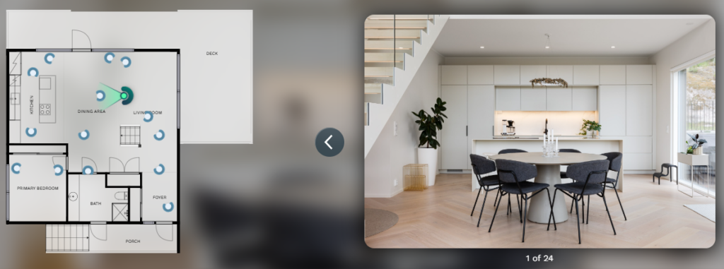 Med en interaktiv 2D-planritning kan besökare klicka på olika delar av ritningen och se detaljerad information, bilder eller länkar till en virtuell rundtur. Perfekt för att skapa en mer engagerande upplevelse för potentiella kunder eller besökare.